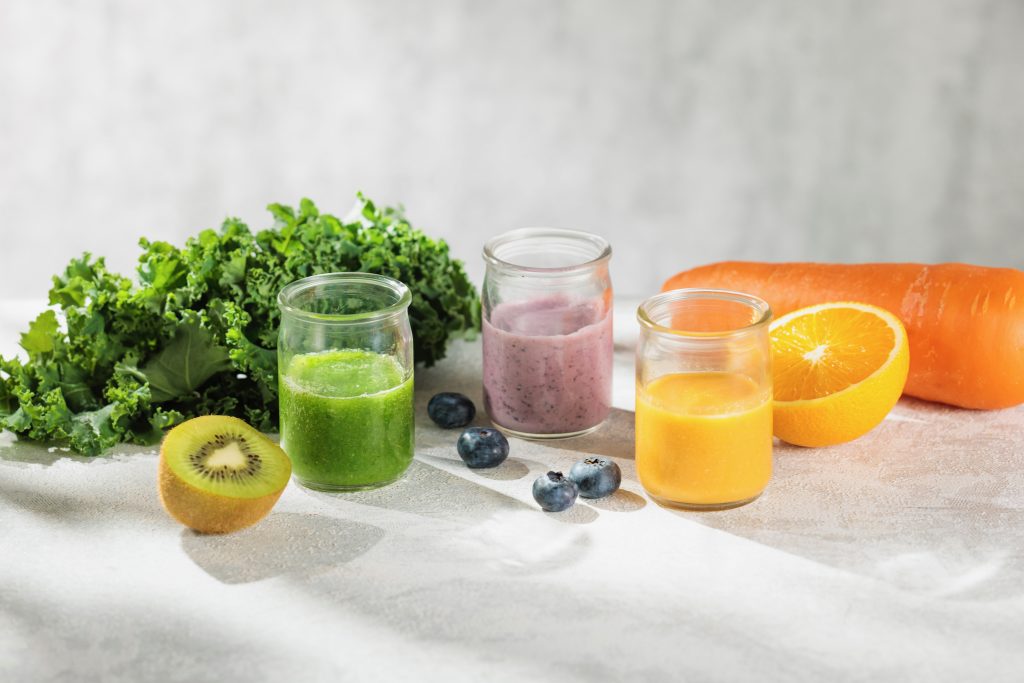 新鮮なフルーツと野菜の搾りたてでお届けするスーパーフレッシュなスムージーです。今のご気分に合わせて、味をお選びください。