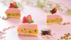 苺とピスタチオのミルクレープ〜ガナッシュサンドクッキー添え〜